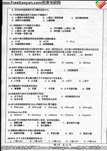 中山大学2007年考研真题-基础医学综合(7)