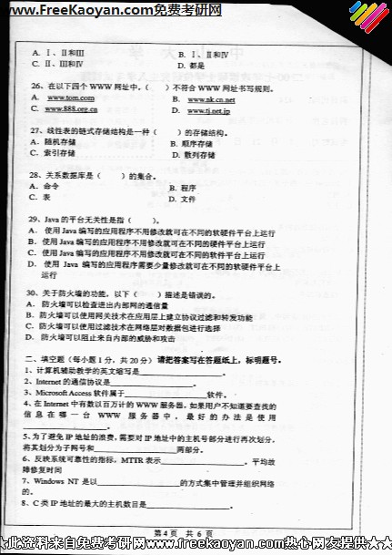 中山大学2007年考研真题-计算机应用基础(4)