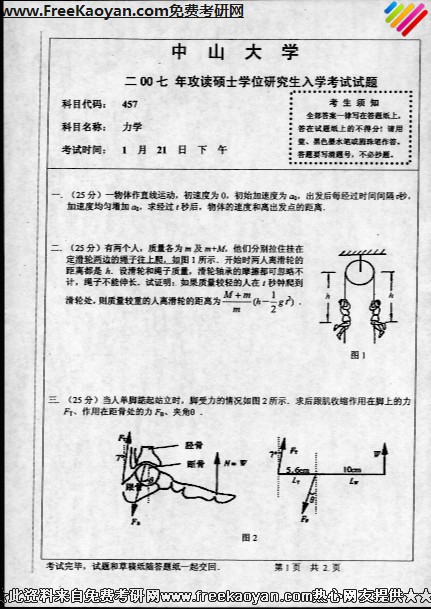 专业课考研经验 本站小编 FreeKaoyan 2018-01-23中山大学2007年考研真题-理论力学