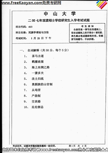 专业课考研经验 本站小编 FreeKaoyan 2018-01-23中山大学2007年考研真题-民俗学理论与方法
