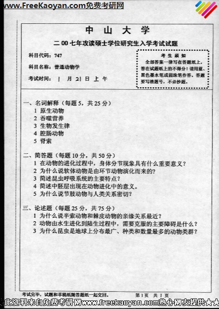 相关话题/中山大学 考研真题 动物学