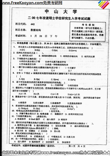 专业课考研经验 本站小编 FreeKaoyan 2018-01-23中山大学2007年考研真题-设计艺术学