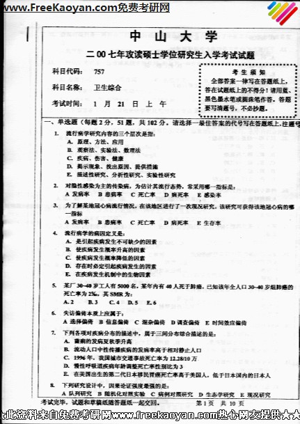 专业课考研经验 本站小编 FreeKaoyan 2018-01-23中山大学2007年考研真题-社会研究方法和社会统计学