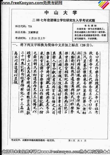 专业课考研经验 本站小编 FreeKaoyan 2018-01-23中山大学2007年考研真题-社会学概论和理论