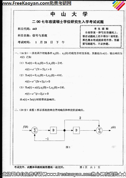 中山大学2007年考研真题-信号与系统