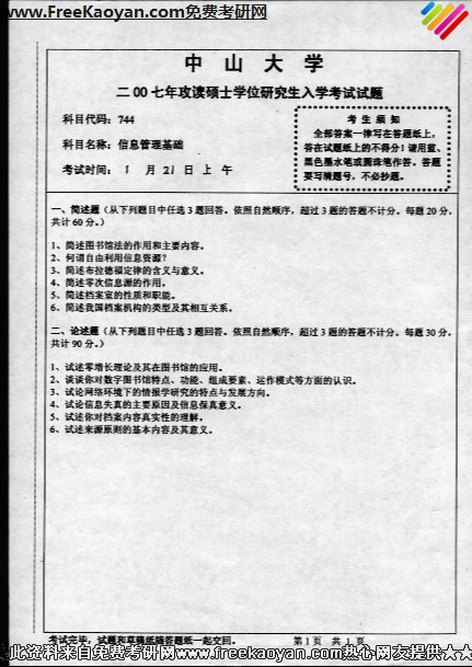 专业课考研经验 本站小编 FreeKaoyan 2018-01-23中山大学2007年考研真题-文献释读