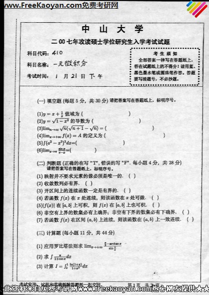专业课考研经验 本站小编 FreeKaoyan 2018-01-23中山大学2007年考研真题-信号与系统