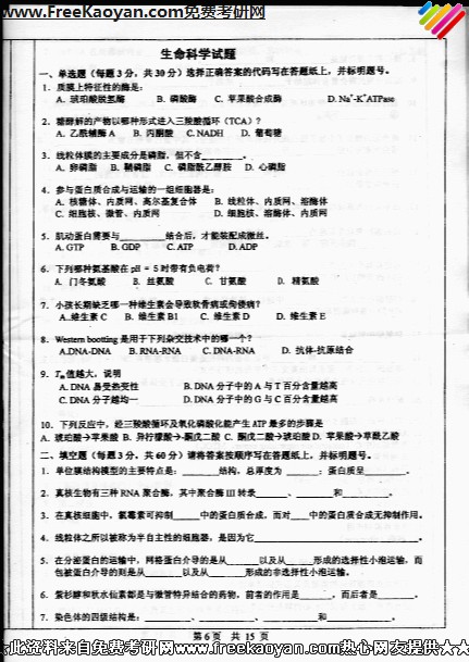 中山大学2007年考研真题-医药生物综合(包含医学、药学、生命科学、化学系出知识)(6)