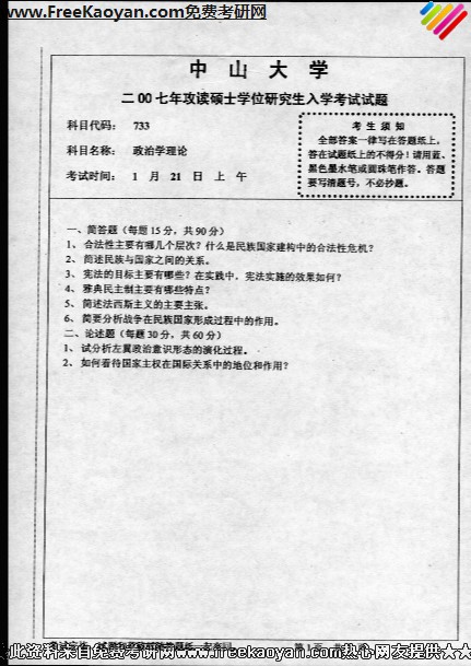 专业课考研经验 本站小编 FreeKaoyan 2018-01-23中山大学2007年考研真题-英语