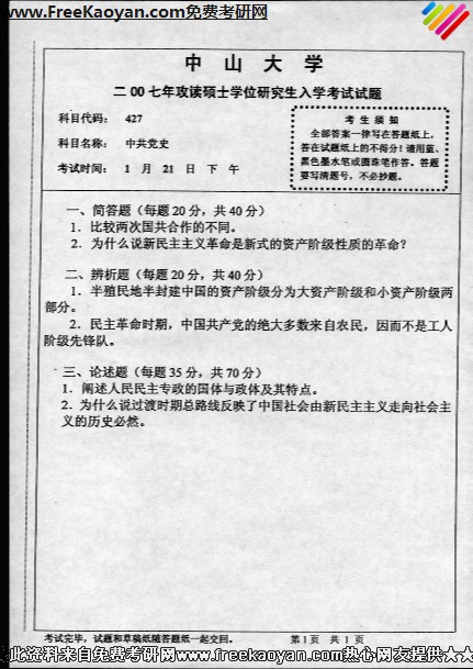相关话题/中山大学 考研真题 中共党史