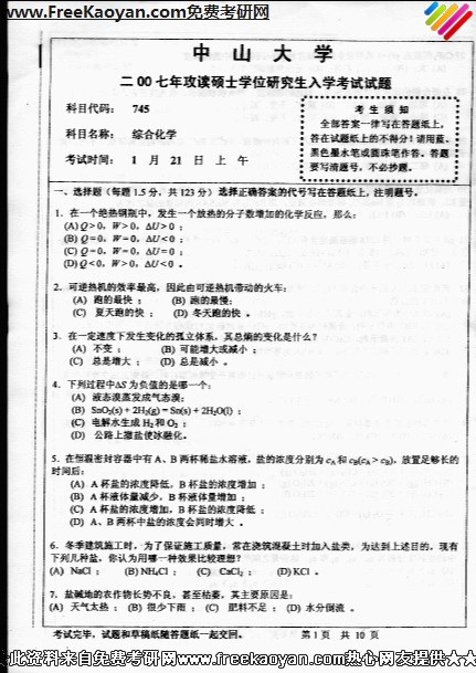 专业课考研经验 本站小编 FreeKaoyan 2018-01-23中山大学2007年考研真题-有机化学