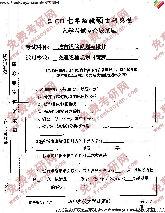 相关话题/华中科技大学 考研真题 设计 规划 城市道路