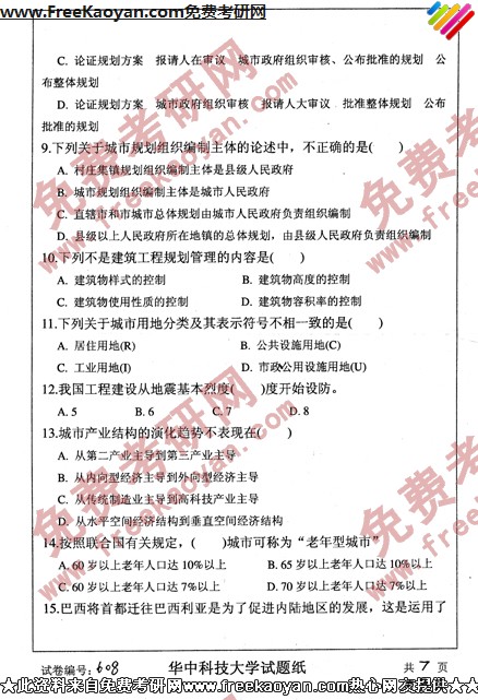 专业课考研经验 本站小编 FreeKaoyan 2018-01-23华中科技大学2007年考研真题-城市道路规划与设计