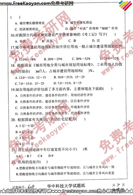 专业课考研经验 本站小编 FreeKaoyan 2018-01-23华中科技大学2007年考研真题-城市道路规划与设计