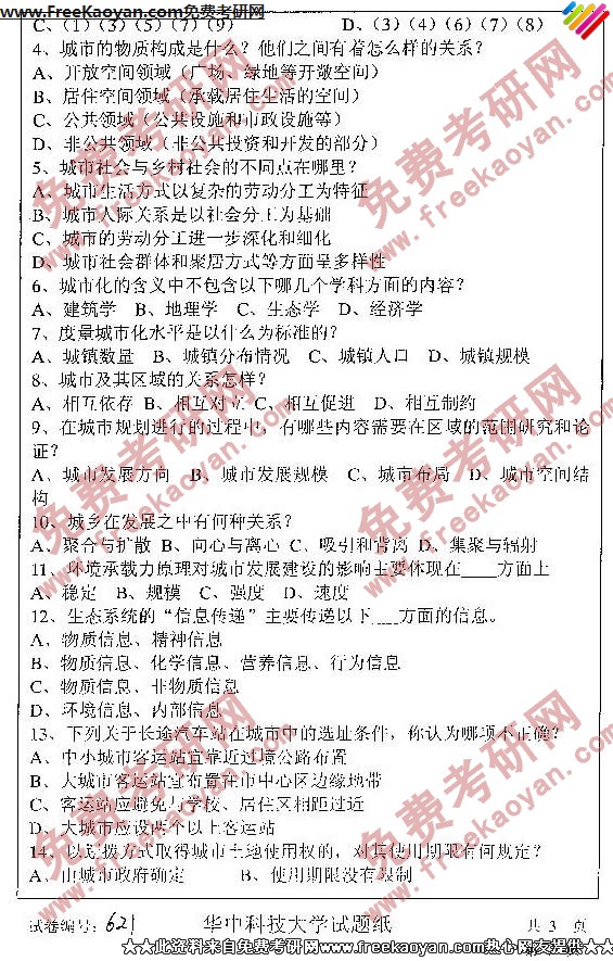 专业课考研经验 本站小编 FreeKaoyan 2018-01-23华中科技大学2007年考研真题-城市规划原理