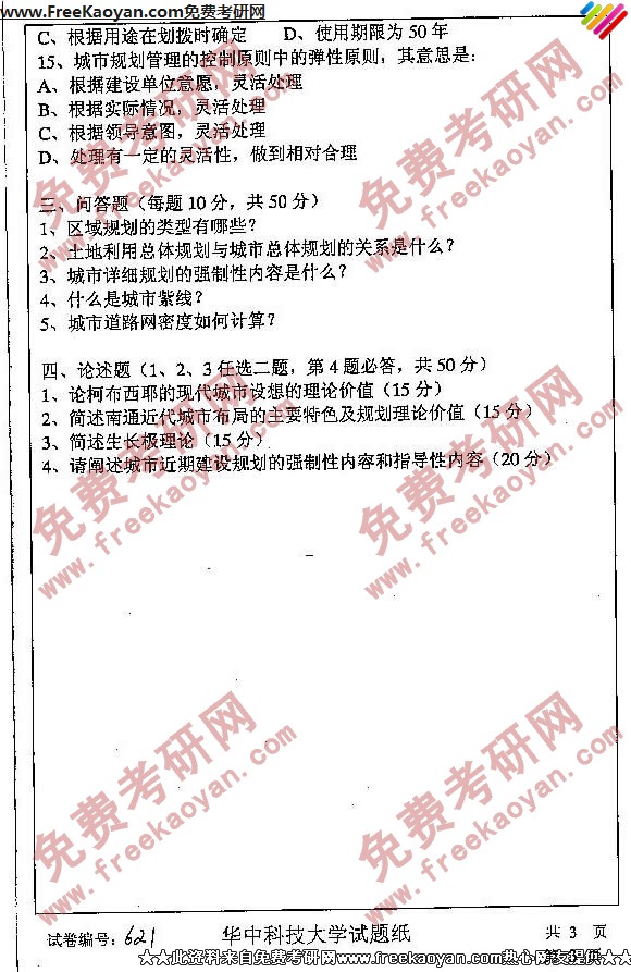 专业课考研经验 本站小编 FreeKaoyan 2018-01-23华中科技大学2007年考研真题-城市规划原理