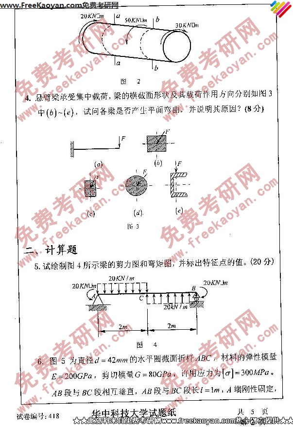 相关话题/考研真题 华中科技大学 船舶 基础 力学