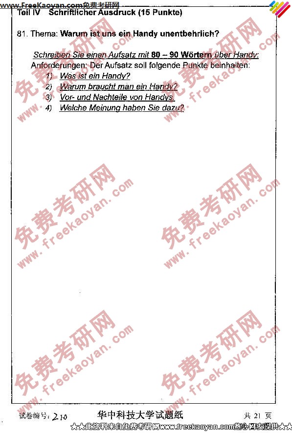专业课考研经验 本站小编 FreeKaoyan 2018-01-23华中科技大学2007年考研真题-材料成形原理