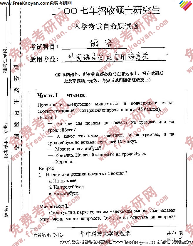 相关话题/考研真题 华中科技大学 外国语言学 俄语