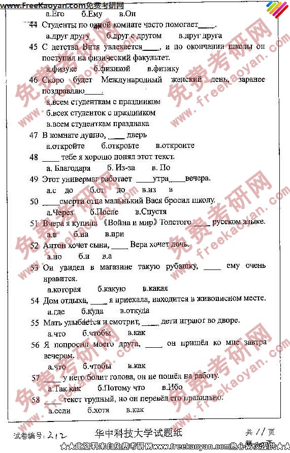 相关话题/考研真题 华中科技大学 外国语言学 俄语