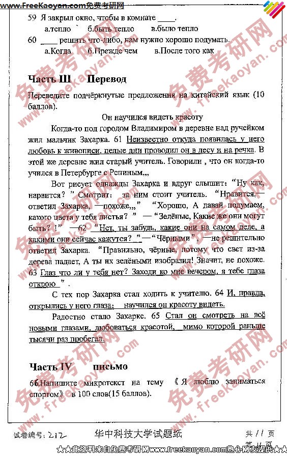 相关话题/考研真题 华中科技大学 外国语言学 俄语