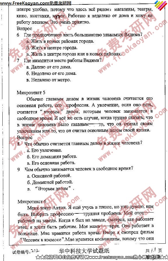 相关话题/考研真题 华中科技大学 外国语言学 俄语