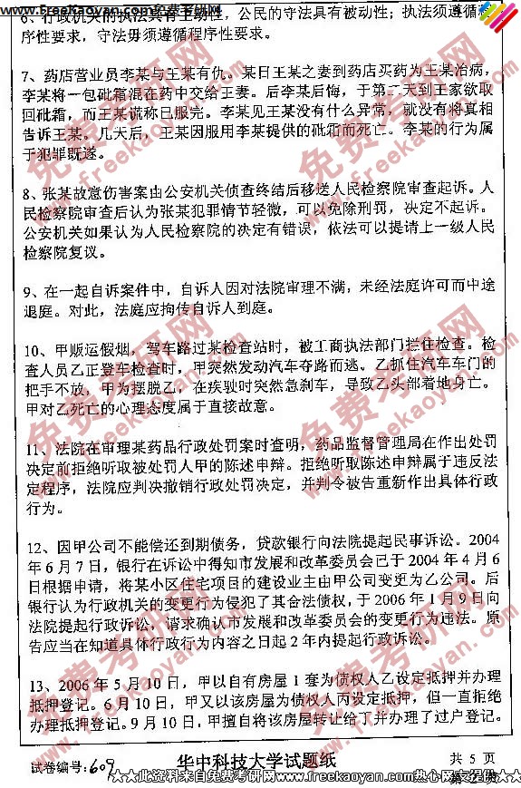 专业课考研经验 本站小编 FreeKaoyan 2018-01-23华中科技大学2007年考研真题-法学专业基础考试试题