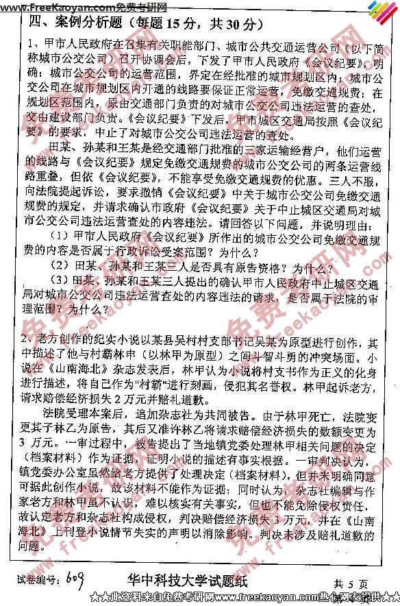 专业课考研经验 本站小编 FreeKaoyan 2018-01-23华中科技大学2007年考研真题-法学专业基础考试试题