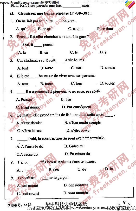 相关话题/考研真题 华中科技大学 外国语言学 法语