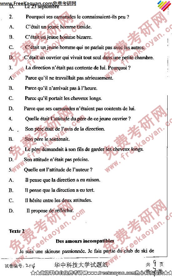相关话题/考研真题 华中科技大学 外国语言学 法语