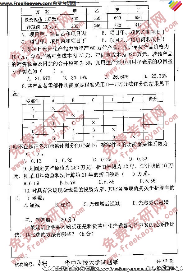 相关话题/考研真题 华中科技大学 工程 项目管理 经济