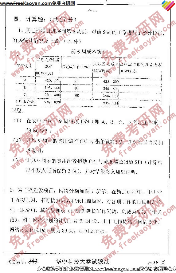 相关话题/考研真题 华中科技大学 工程 项目管理 经济