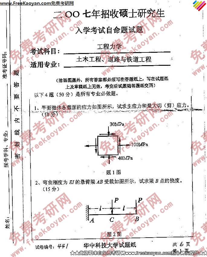 专业课考研经验 本站小编 FreeKaoyan 2018-01-23华中科技大学2007年考研真题-船舶力学基础