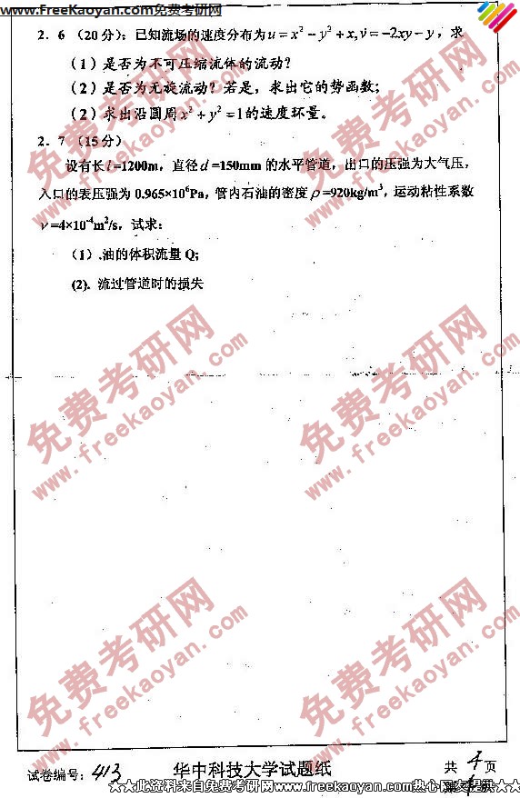 相关话题/考研真题 华中科技大学 流体力学 工程