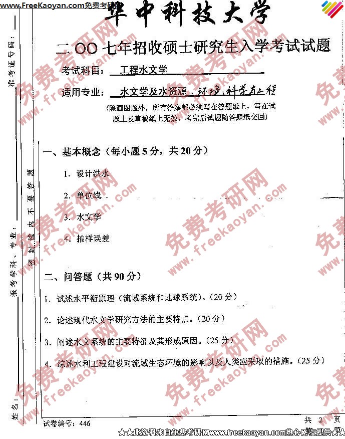 专业课考研经验 本站小编 FreeKaoyan 2018-01-23华中科技大学2007年考研真题-工程经济与项目管理