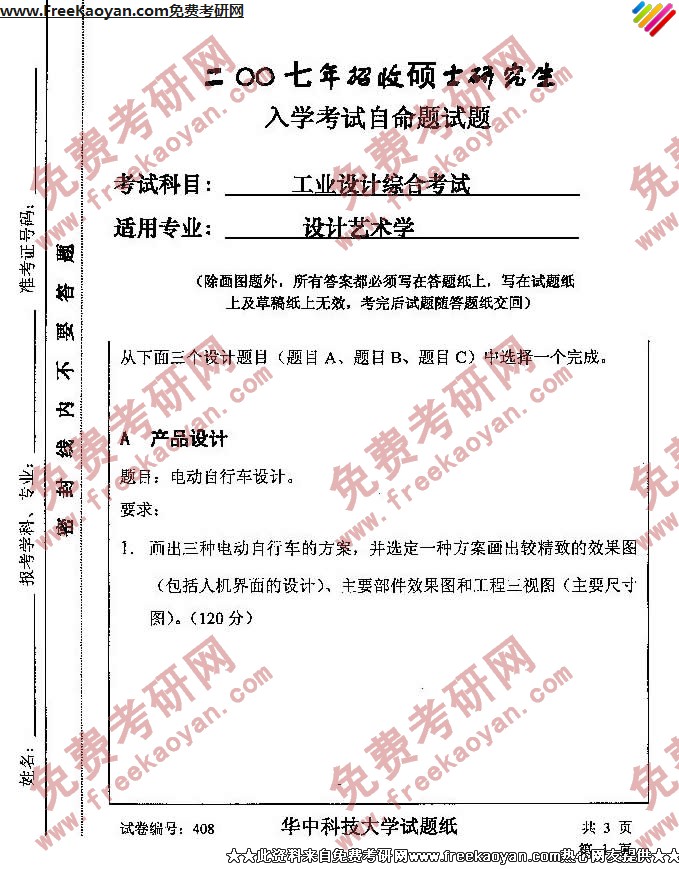 相关话题/考研真题 华中科技大学 综合考试 工业设计