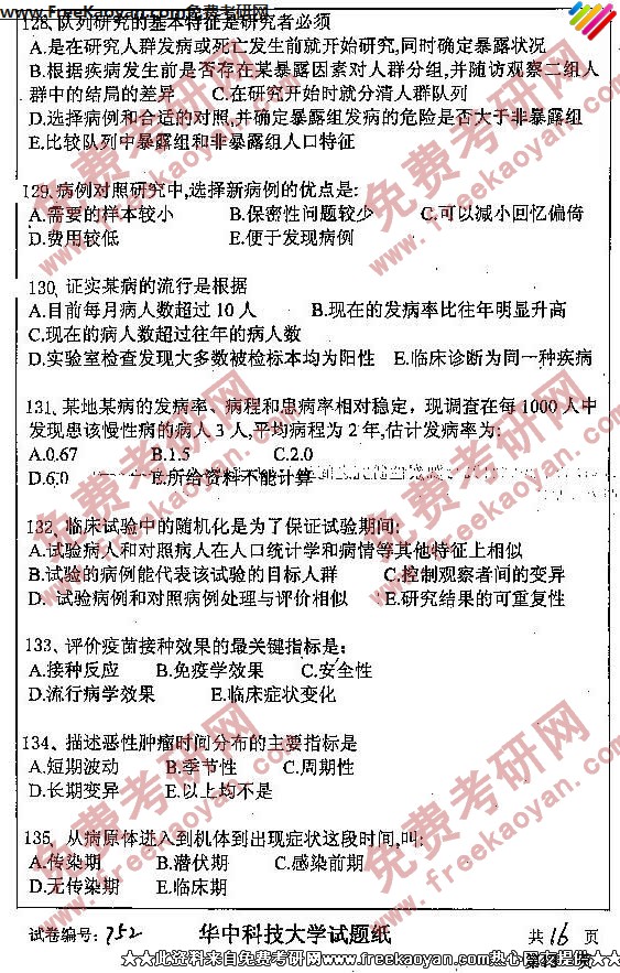 相关话题/考研真题 华中科技大学 卫生综合 公共