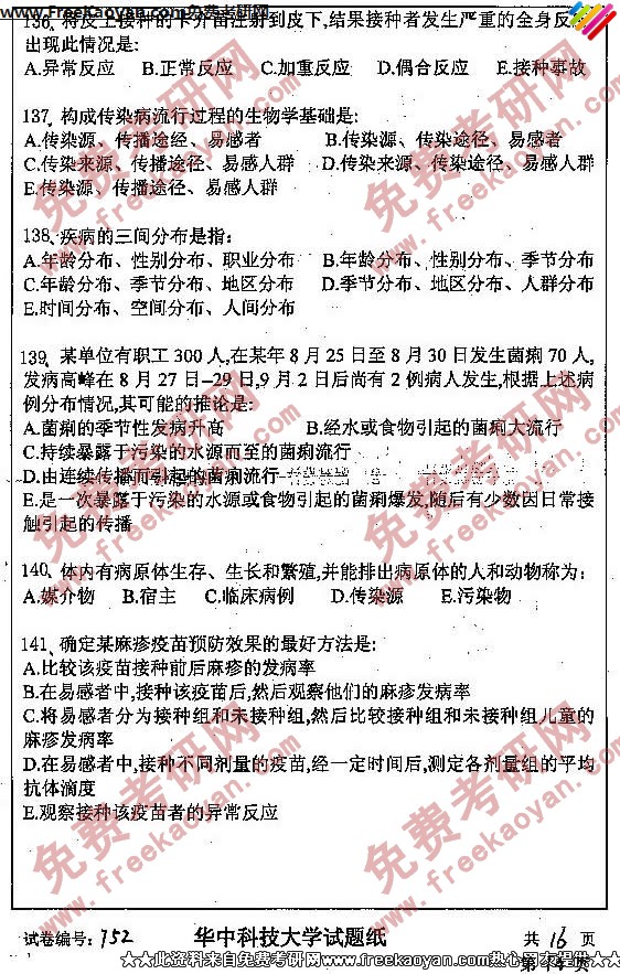 相关话题/考研真题 华中科技大学 卫生综合 公共