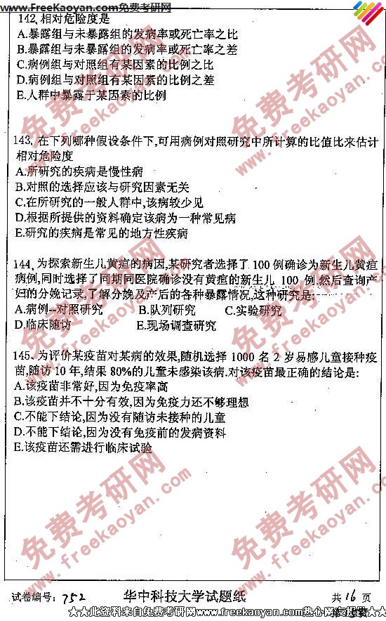 相关话题/考研真题 华中科技大学 卫生综合 公共