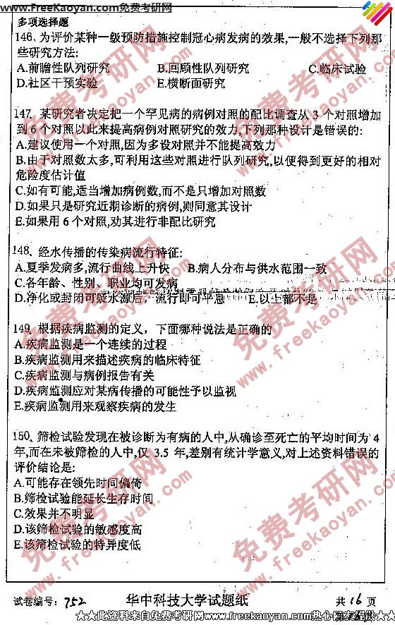 相关话题/考研真题 华中科技大学 卫生综合 公共