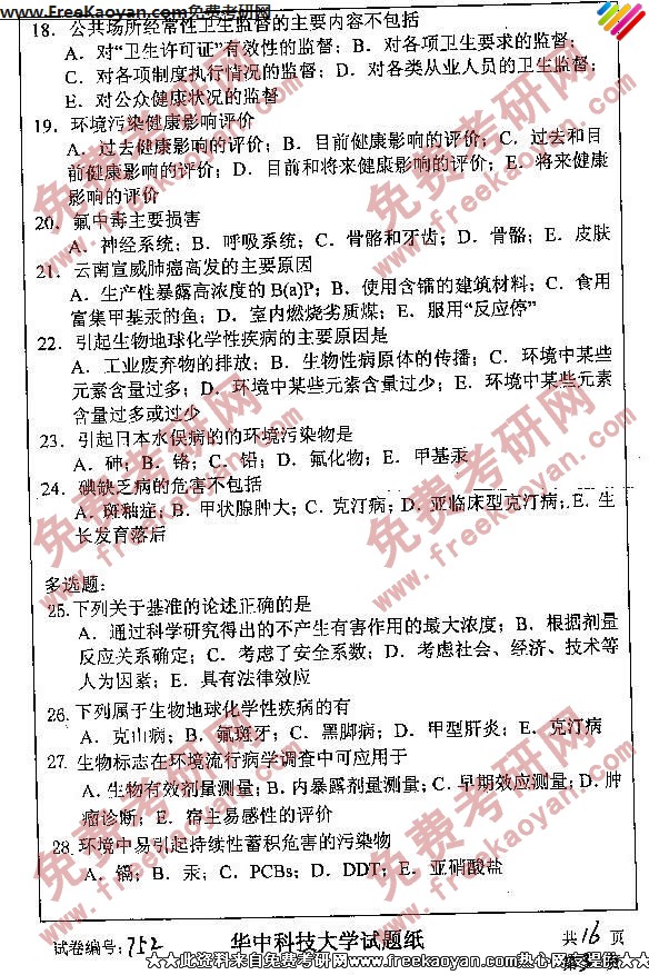 相关话题/考研真题 华中科技大学 卫生综合 公共