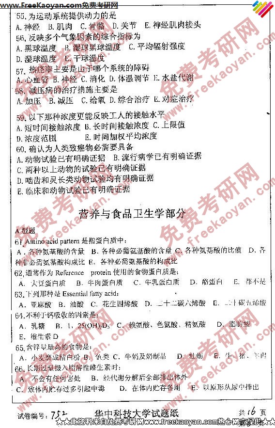 相关话题/考研真题 华中科技大学 卫生综合 公共