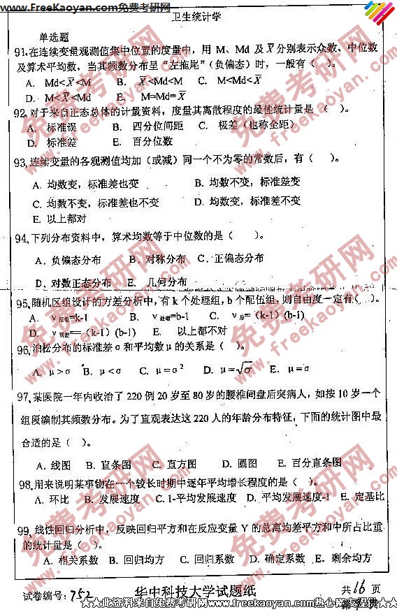 相关话题/考研真题 华中科技大学 卫生综合 公共