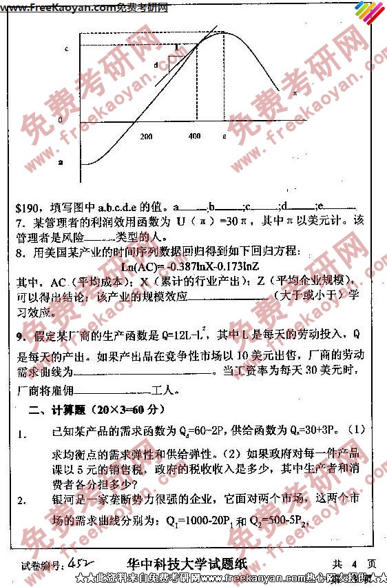专业课考研经验 本站小编 FreeKaoyan 2018-01-23华中科技大学2007年考研真题-工程经济与项目管理