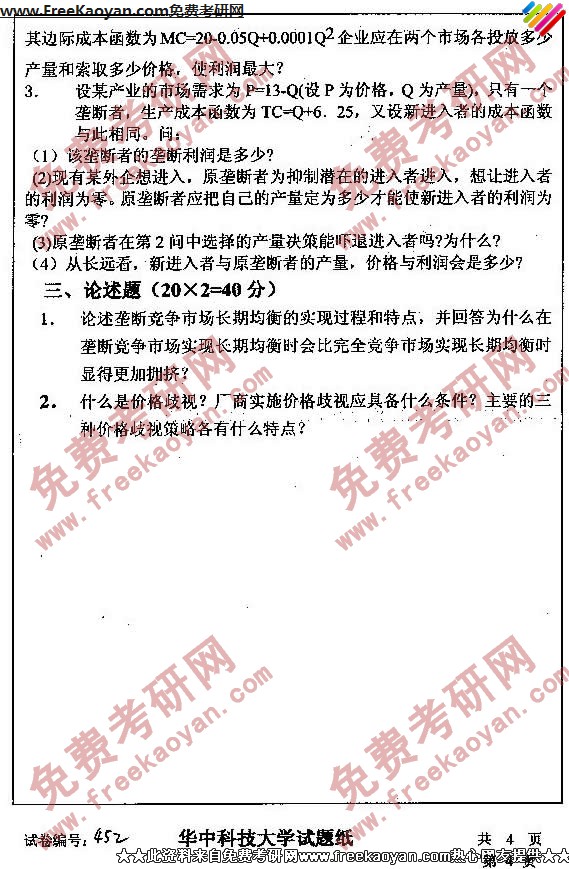 专业课考研经验 本站小编 FreeKaoyan 2018-01-23华中科技大学2007年考研真题-工程经济与项目管理