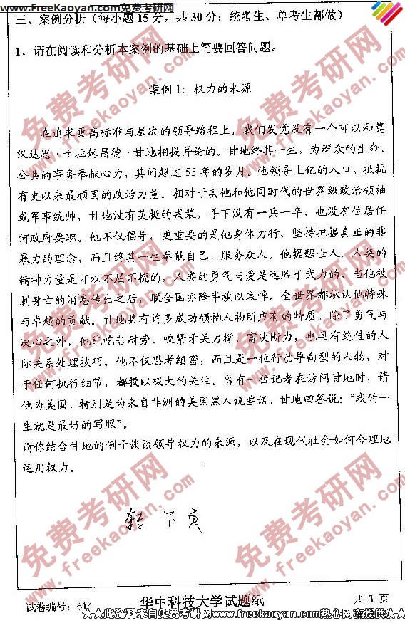 专业课考研经验 本站小编 FreeKaoyan 2018-01-23华中科技大学2007年考研真题-法学专业基础考试试题611