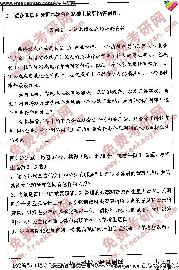 相关话题/华中科技大学 考研真题 管理学