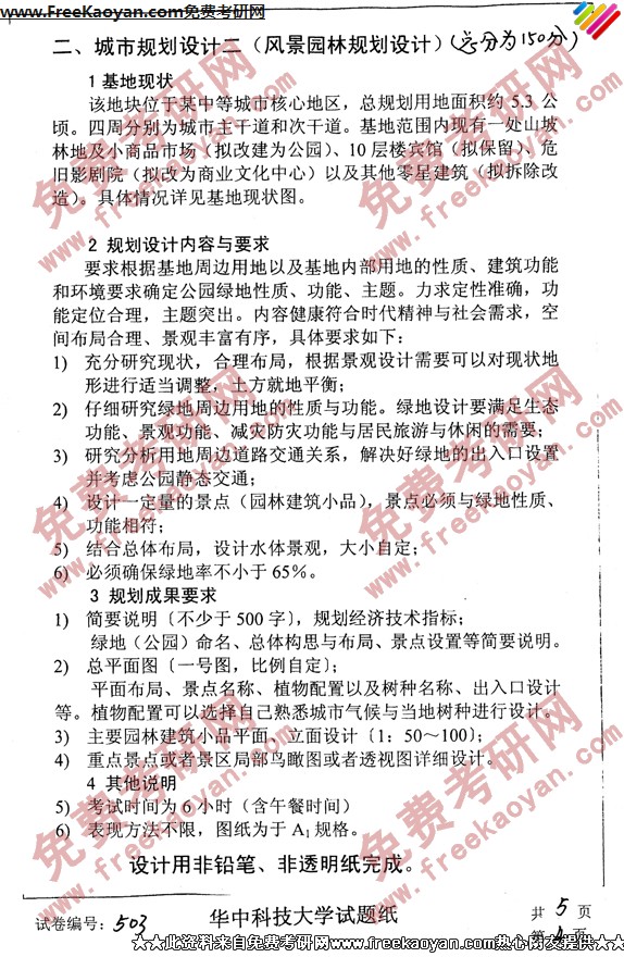 华中科技大学2007年考研真题-规划设计6小时快题(4)