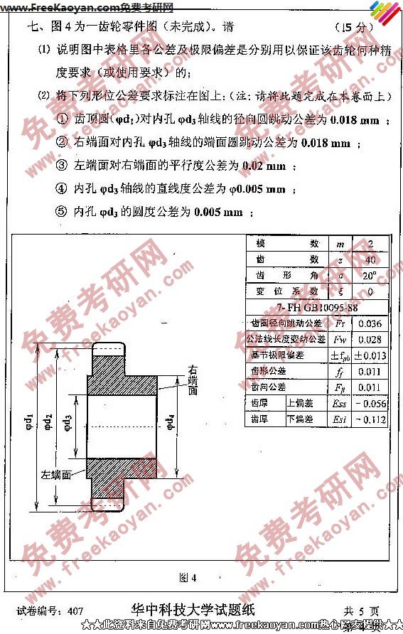 华中科技大学2007年考研真题-互换性与技术测量(4)