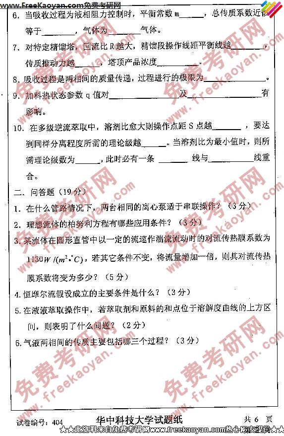 专业课考研经验 本站小编 FreeKaoyan 2018-01-23华中科技大学2007年考研真题-工程流体力学